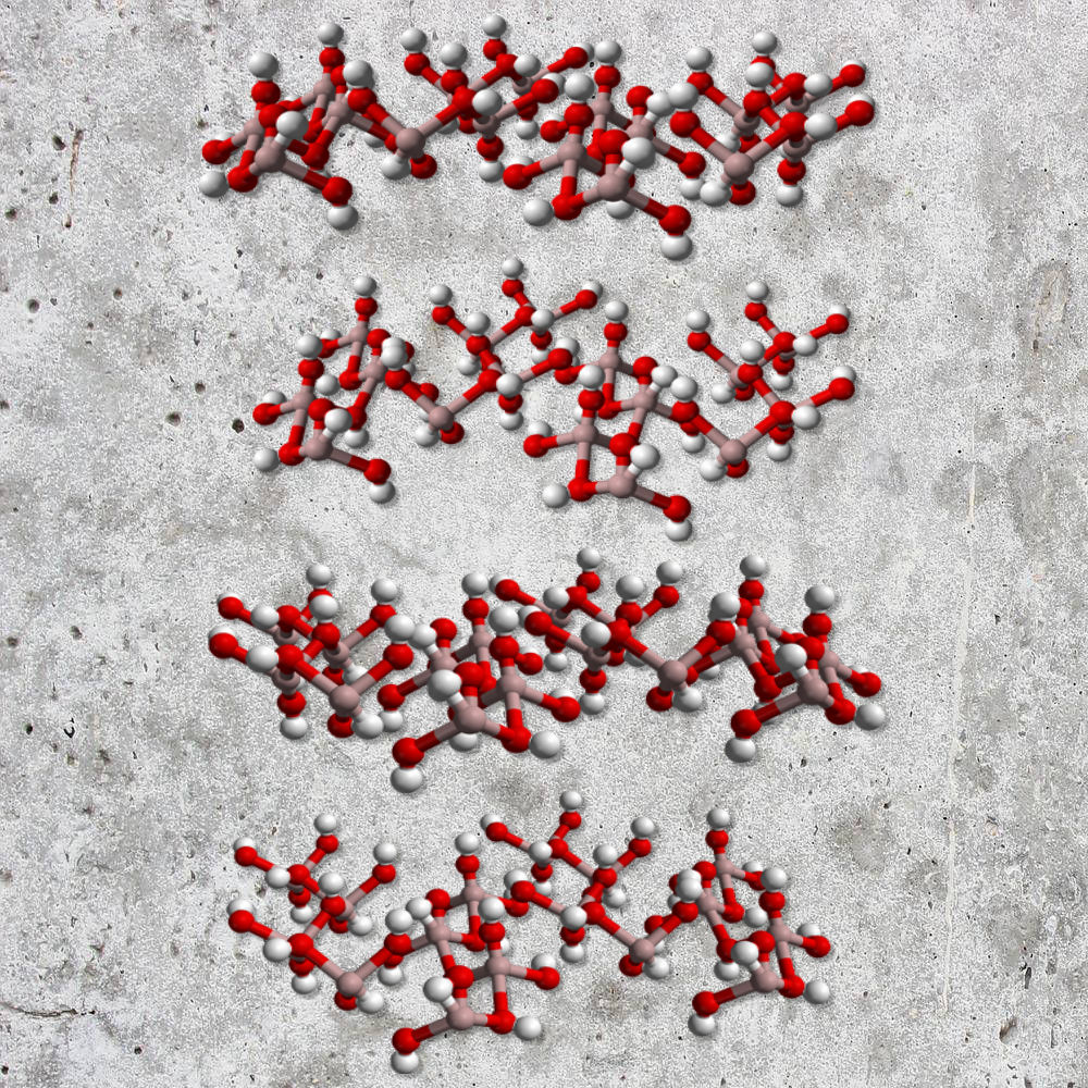 The four atomic layers of the ceramic structure complete a 180º horizontal rotation and slight vertical displacement of the subsequent layer relative to the parent layer. This inter-digitation of ceramic atomic layers provides additional strength and more surface area (due to increased ceramic units within the same space), increasing the cement's tensile strength.